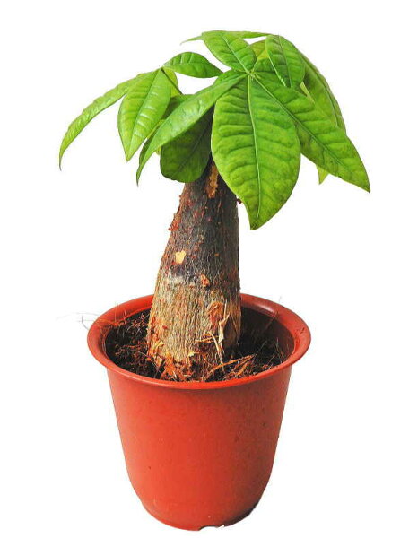 パキラの魅力はヤツデ状の造形的な明るい葉とユニークなトックリ状の太った株元です。 切った枝は容易に挿し木できますが株元はトックリにはなりません。 1本立ちの小型パキラはこの枝を切って葉を芽吹かせたものを挿し木しています。 小さい形を保つには、伸びた枝葉を枝元で切り取り常に葉を更新すると良いでしょう。 パキラは再生力が強く、どこで切っても新芽が出てきます。 成長も早く、毎年更新してもバランスよく葉っぱを展開し、観賞できます。 とにかく手間がかからず丈夫なので初心者向きの観葉植物といえます。 樹形、葉色に多少個体差があります。あらかじめご了承下さい。 鉢の形態:4号プラ鉢(鉢は他の物になることもあります) 全体サイズ:幅約20cm前後 高さ25〜30cm(鉢を含むサイズです)パキラ パンヤ科 パキラ属 常緑多年草 パキラの魅力はヤツデ状の造形的な明るい葉とユニークなトックリ状の太った株元です。しかしタネから育てないとトックリの形にはなりません。 切った枝は容易に挿し木できますが株元はトックリにはなりません。 再生力が強く、どこで切っても新芽が出てきます。形が乱れたら好きな部分で切ります。ただし切る時期は十分暖かくなった5月〜10月が適しています。 日向から自然光の入る明るさまで対応できます。 真夏の直射日光は避けてください。葉焼けを起こします。 耐寒性があり5℃あれば越冬しますが落葉します。株は落葉しても生きています。水を一冬与えなくても春先に新芽がふいてきます。冬の水の与えすぎは根腐れを起こしますので極端に控えてもかまいません。 葉が白っぽくなって落ちるのはハダニが原因です。 葉水をまめに与えて空中保湿に努めましょう。