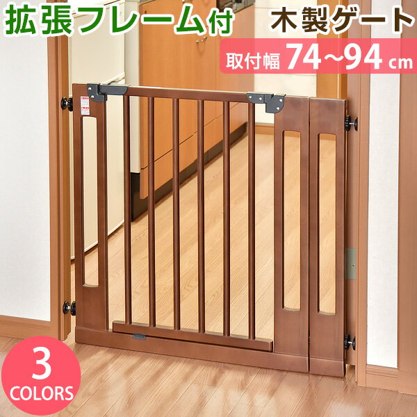 ▼こちらで動画もご覧いただけます▼ ▼単品販売ページはこちら▼ 木製ゲート 拡張パーツ ▼新登場!現役ママが考えたベビーゲートもございます!▼ 拡張フレーム付き 仕様サイズ取り付け可能幅74〜94×奥行4×高さ74.4cm【スタッフマツカナのおすすめポイント】・当店オリジナル木製ベビーゲート・前後方向90度に開く・オートクローズで閉めやすい・片手で簡単にロック解除・90度以上開けると開けっ放しも可能 ・2段階のリフトアップロック・取り付け簡単なつっぱり式重量 本体:約3kg 拡張フレーム:約1.5kg対象年齢〜24ヶ月まで(目安)素材ビーチ材(ラッカー塗装) カラーナチュラル、ライトブラウン、ダークブラウン梱包サイズ[本体]6×75×77cm [拡張フレーム]3×11×77cm生産国中国送料【送料無料(沖縄県・離島は送料別途)】※北海道・沖縄県・離島の場合はお問い合わせください。※別途送料が必要な場合には、送料をご了承いただいてからの発送となります。備考※配送は全て宅配便(1人)での玄関渡しとなります。※ご使用前に必ず同封の取扱説明書をよくお読みの上、正しくお使いください。誤った使い方をすると、人的または物的損傷を負う可能性が御座います。※階段降り口に使用すると万が一の場合、階段から落ち怪我をする可能性があるため、階段降り口(階段上)でのご使用はできません。※本製品を使用しているときは、保護者の方はお子様の動作に十分注意を払ってあげてください。 ※対象年齢外のお子様に使用するとお子様の思わぬ動きにより、重大な事故に繋がる恐れがあります。※突っ張る力で支える構造のため、壁紙や壁の材質によっては、商品の設置により破損する場合があります。必ず壁紙や壁の材質、強度を確認してから設置してください。 ※拡張フレームは左右に最大各1枚ずつ設置可能です。※扉は半開き以上の状態で手を離すと、自動的に閉じ、上下のロックもかかりますが、安全のために実際に扉がロックされていることを必ず確認してください。 ■お支払い方法・配送について詳しくはこちら