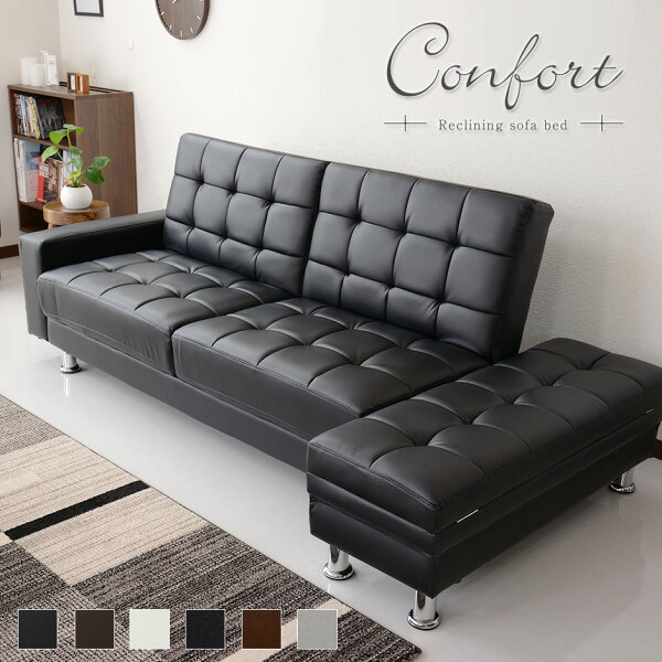 配送について 送料 無料 (北海道+25,000円・沖縄・離島・一部地域見積り) ●商品詳細 -infomation-  商品名  ソファベッド コンフォルト【Confort】  サイズ  ソファ本体:約幅152〜208×奥行き80〜104×高さ38〜80(cm)  スツール:約幅104×奥行き40×高さ38(cm)  アーム:約幅16×奥行き79.5×高さ37.5(cm)  座面高:38(cm)  肘掛け高さ:48(cm)  材 質 【素材】  ウレタン/ウェービングベルト/Sバネ/  綿/アーティフィシャルレザー/天然木  重 量  本体:約24kg  スツール:約6kg  アーム:3kg  耐荷重  ソファ時:150kg  ベッド時:120kg  スツール:80kg  スツール収納:15kg  梱包重量 梱包材等含め約40kg  備 考  ※意匠登録申請中  ※組み立ては必ず2人以上で行ってください  ※本商品は大型商品の為、配送日時指定ができません。  ※他商品との同梱は出来かねます。  ※ご使用のモニターやディスプレイ等の環境によって、  実際の明るさや色と多少異なって見える場合がございます。  ※組み立て方や個体差により表記と  多少の差異が生じる場合がございます。  その他、記載事項ご確認の上ご注文ください。配送について 送料 無料 (北海道+25,000円・沖縄・離島・一部地域見積り) >>> 開梱設置付きのページはこちら <<<
