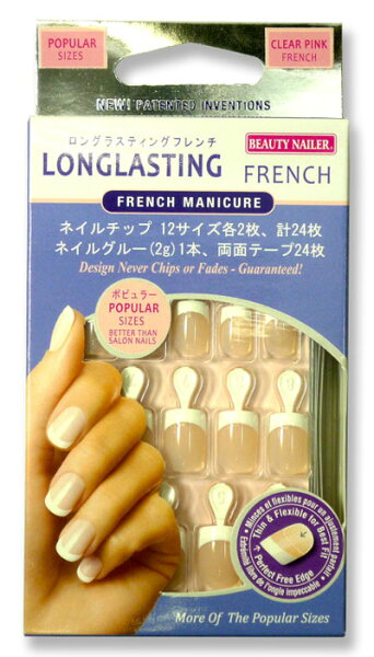 普段、お仕事や家事でなかなかネイルが出来ない。 でもパーティーや女子会。 ちょっとしたお出かけの時など、短期間だけネイルを楽しみたい! そんな時に便利なネイルチップ。 どんな服装にも良く合う、王道のフレンチネイルだから、気軽にネイルが楽しめます。 ショートネイルだからとっても自然。 グルーと両面テープがセットになっているから、届いたその日にネイルチップが装着出来ます。 【内容量】 ・24枚入(12サイズが各2枚) ・ネイルグルー ・両面テープ *メール便ご希望のお客様へ* 必ず配送方法を「メール便」をご選択ください。 (「宅急便」をご選択された場合は、宅急便配送となります。)クイック注文をすると自動的に宅急便になりますのでご注意ください。 複数の商品をご注文され、メール便サイズ外になった場合、 受注後に当店で宅急便配送(宅急便の送料)へ変更とさせていただきますので、ご了承くださいませ。 ※こちらはお取り寄せ商品になります。受注後、メーカーへ発注いたします。入荷時期、欠品等のご連絡は在庫確認後ご連絡させていただきますのでご了承下さいませ。